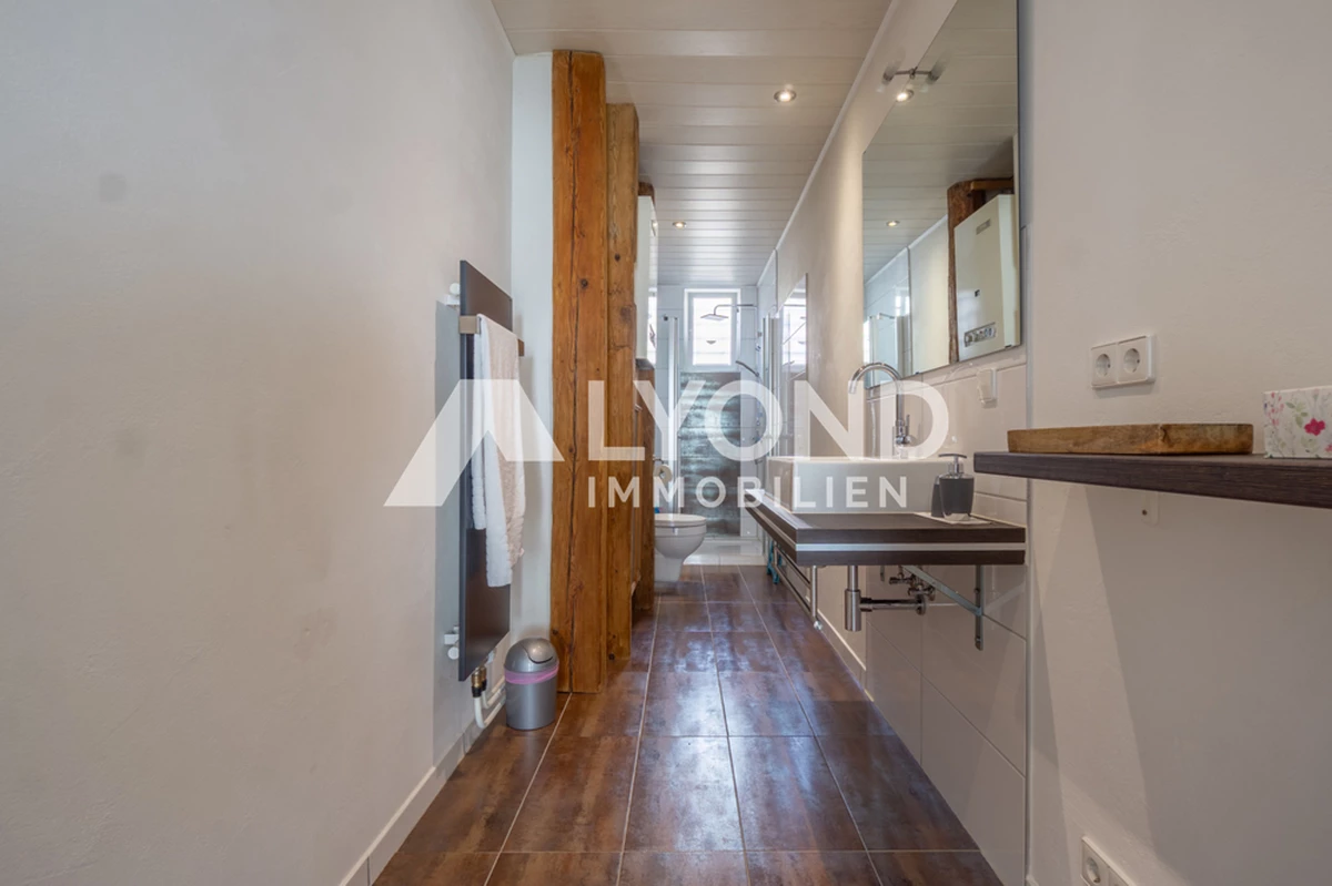 Historischer Charme trifft auf praktische Wohnlösung: Diese gemütliche 2-Zimmer-Erdgeschosswohnung befindet sich in einem denkmalgeschützten Altbau aus dem Jahr 1870 mit insgesamt vier Wohneinheiten in Sulz am Neckar und wurde 2015 renoviert. Auf ca. 42 m² Wohnfläche bietet sie ein durchdachtes Raumkonzept – ideal für Singles, Pendler oder Kapitalanleger. Der Wohnbereich überzeugt durch eine angenehme Atmosphäre und wird durch die Kombination aus Laminat- und Fliesenböden sowie Mineralputz stilvoll ergänzt. Die Einbauküche verfügt über einen integrierten Essbereich und schafft so eine praktische und zugleich kommunikative Lösung für den Alltag. Das Tageslichtbad ist mit Dusche und Toilette ausgestattet und bietet eine funktionale sowie gepflegte Ausstattung. Doppelt verglaste Schallschutz-Kunststofffenster sorgen trotz zentraler Lage für ein ruhiges Wohngefühl und ein angenehmes Raumklima. Beheizt wird die Wohnung über eine Gasheizung. Auch ohne Balkon überzeugt die Wohnung durch ihren funktionalen Grundriss und den besonderen Altbaucharakter. Die kompakte Größe, der gepflegte Zustand und die solide Ausstattung machen diese Immobilie zu einer attraktiven Option für Eigennutzer oder eine interessante Investitionsmöglichkeit. Ein charmantes Zuhause mit Charakter – ideal für alle, die stilvolles Wohnen auf kompakter Fläche schätzen.