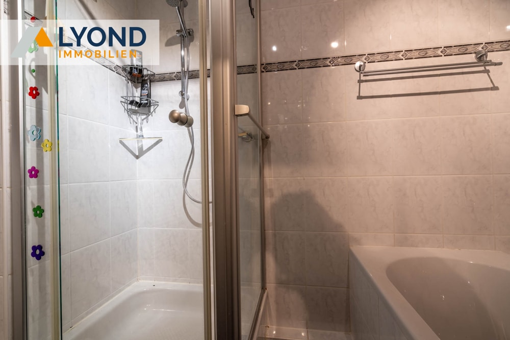Das hochwertige Hauptbad bietet Ihnen sowohl eine Badewanne mit Whirlpoolfunktion, als auch eine Dusche. Durch das junge Baujahr (1999) sind die Fliesen neutral und als zeitlos zu beschreiben. Neben dem Hauptbad gibt es noch ein Gäste-WC neben dem Eingangsbereich.