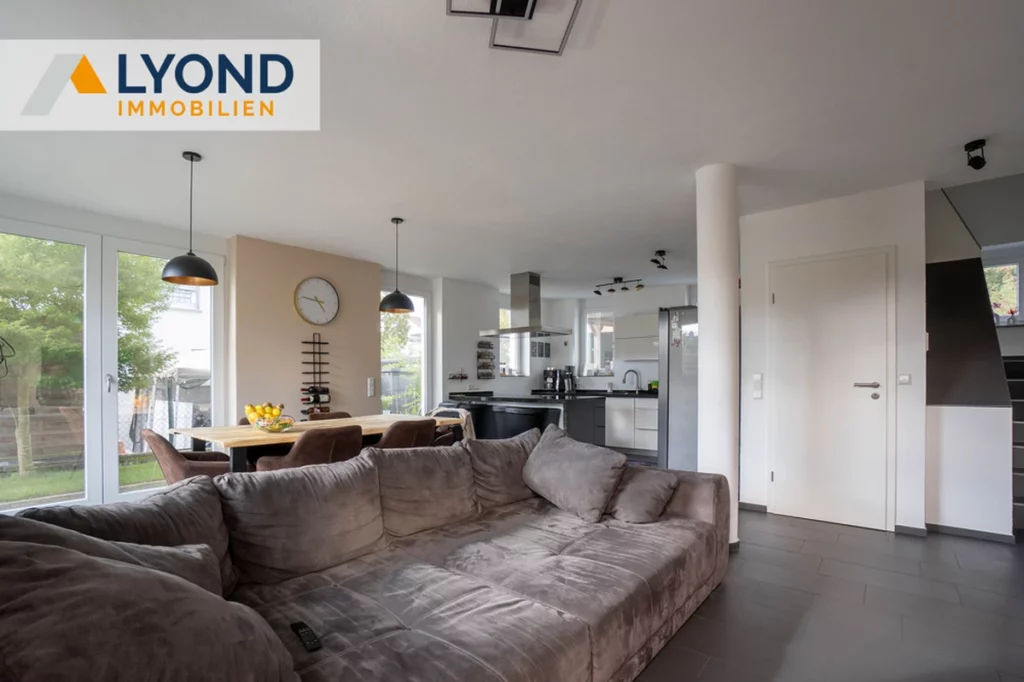 Im Inneren erwartet Sie eine moderne Einbauküche, die mit hochwertigen Geräten ausgestattet ist und viel Platz für kulinarische Kreationen bietet. Der offene Wohn- und Essbereich schafft einen einladenden Raum für gesellige Treffen. Das Haus verfügt über 5,5 Zimmer, die flexibel genutzt werden können, sei es als Schlafzimmer, Arbeitszimmer oder Gästezimmer.