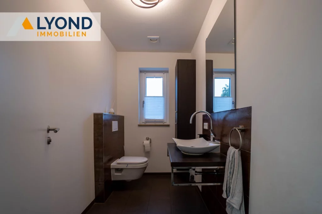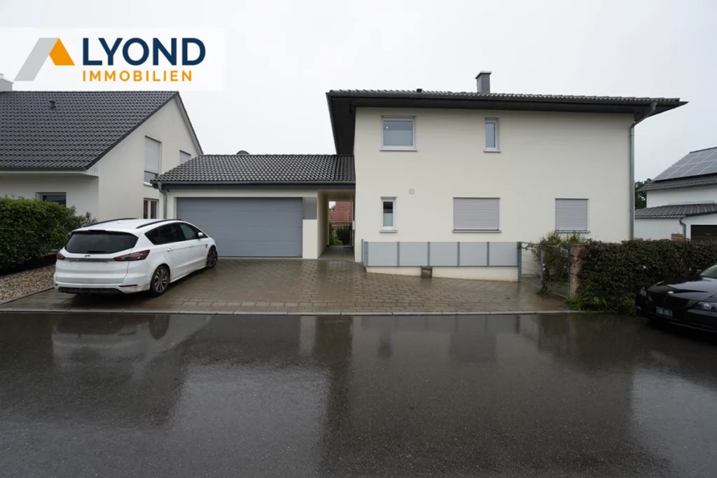 Die Doppelgarage bietet Platz für zwei Autos, während drei zusätzliche Stellplätze auf dem Grundstück zur Verfügung stehen. Insgesamt bietet dieses Einfamilienhaus modernen Wohnkomfort und eine harmonische Verbindung aus Stil, Funktionalität und Nachhaltigkeit.