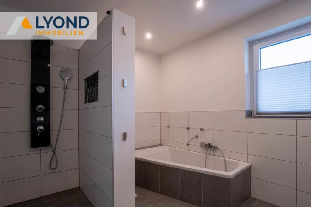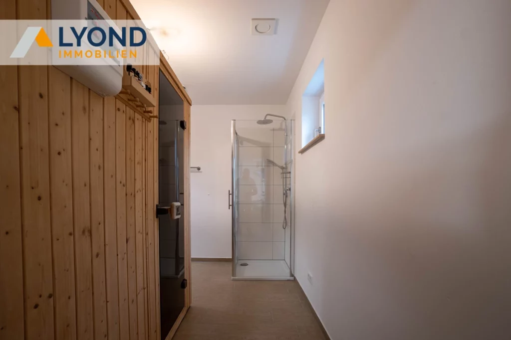 Für Wellness-Fans gibt es eine eigene Sauna mit Dusche, die nach einem langen Tag zur Entspannung einlädt. Nachhaltigkeit wird ebenfalls großgeschrieben: Das Haus ist mit einer Solarthermie-Anlage zur Warmwasserbereitung sowie einer Photovoltaikanlage mit 7,4 kW ausgestattet, die umweltfreundliche Energie liefert.