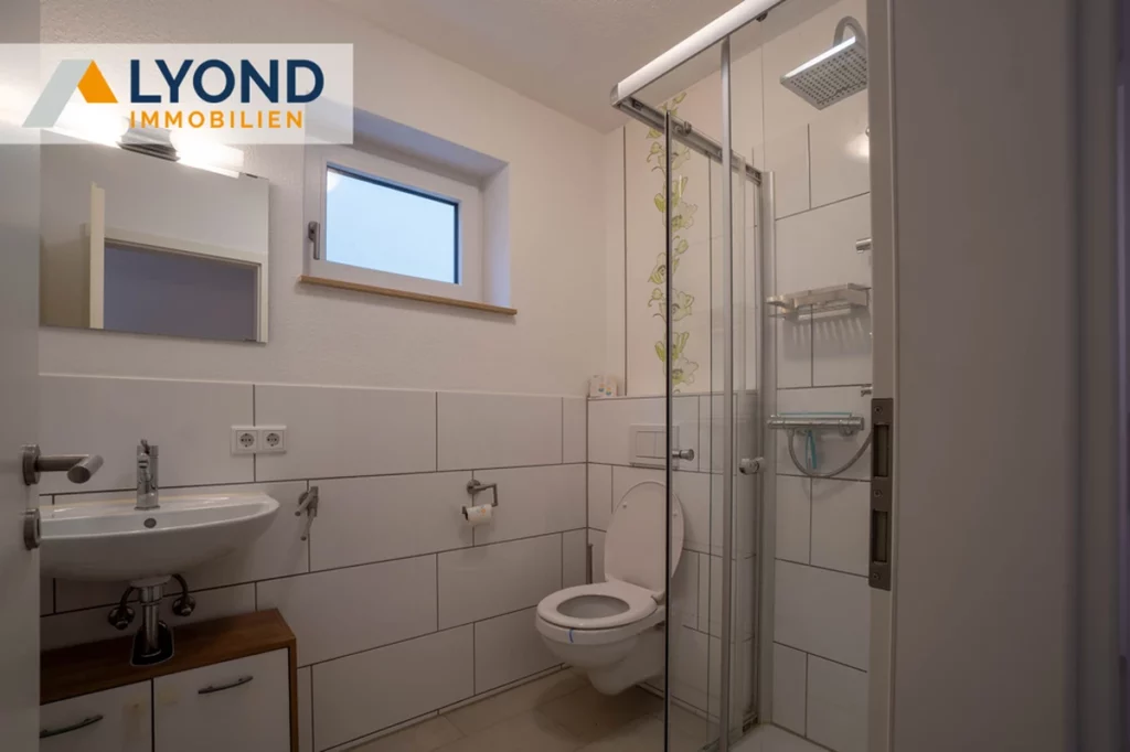 Zusätzlich verfügt das Haus über eine 30 m² große Einliegerwohnung, die ideal als Gästezimmer oder für Familienmitglieder genutzt werden kann. Eine Nutzfläche von 60 m² ermöglicht vielfältige Verwendungsmöglichkeiten, von einem Hobbyraum bis zu einem Arbeitsbereich.