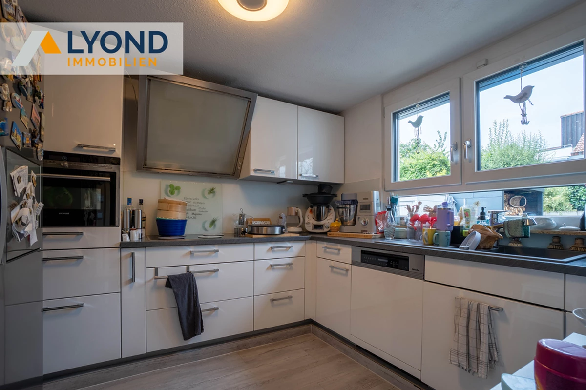 Im Inneren erwarten Sie insgesamt 5,5 Zimmer, die vielseitige Nutzungsmöglichkeiten bieten. Die beiden separaten WCs sorgen für zusätzlichen Komfort, insbesondere bei geschäftigen Morgenstunden. Der lichtdurchflutete Wohn- und Essbereich, der zu einer der zwei Terrassen führt, bildet das Herz des Hauses und eignet sich hervorragend für gesellige Abende mit Freunden oder der Familie.