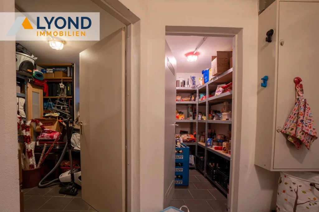 Zusätzlich zur Wohnfläche verfügt das Haus über eine Nutzfläche von 40 m², die sich auf zwei Kellerräume, einen Hobbyraum und einen praktischen Hauswirtschaftsraum verteilt. Diese Räume bieten vielseitige Nutzungsmöglichkeiten – sei es für Hobbys, als Stauraum oder für Waschen und Trocknen.