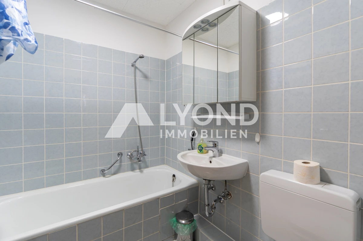 – Badezimmer mit Fliesen und grosser Badewanne zum entspannen