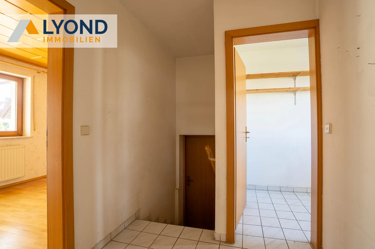 – Zweifalienhaus – Baujahr 1954, ausgebaut 1992 – Grundstücksfläche 796 m² – Wohnfläche 206 m² – 8 Zimmer – 2 Küchen – Abstellkammer – 2 Badezimmer – 2 Separate WC – Ölzentralheizung – Nutzfläche 69 m² – Großer Keller und Gewölbekeller – Renovierungsbedürftig – Doppelgarage – 4 Stellplätze – Terrasse – Balkon – Großer Garten