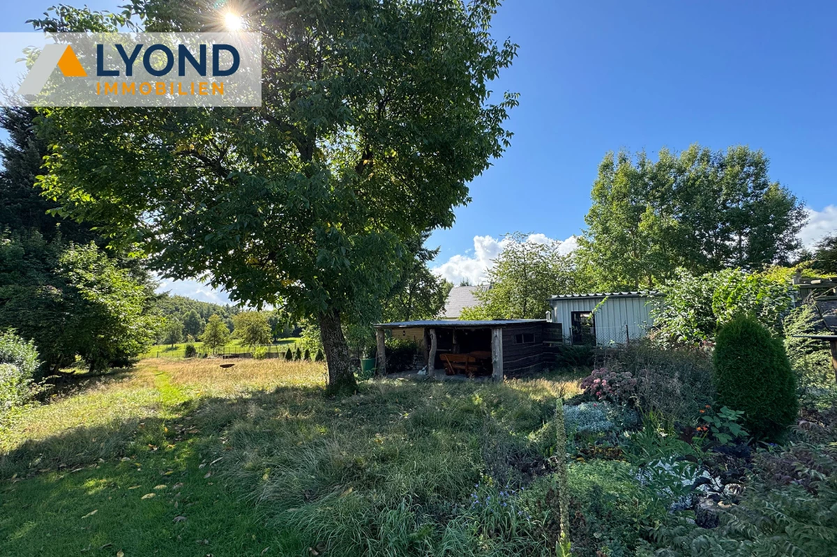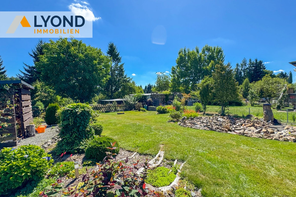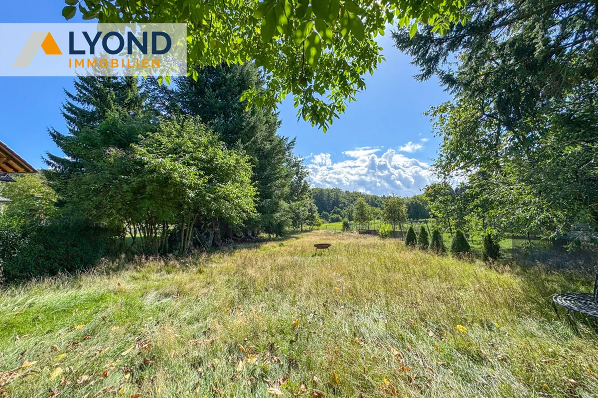 Der parkähnliche Garten ist das Herzstück des Anwesens. Alter Baumbestand, gepflegte Ziersträucher und ein idyllischer Naturteich schaffen eine besondere Atmosphäre. Weitläufige Grünflächen bieten Platz für Gemüsebeete oder weitere Gestaltungsideen. Besonders hervorzuheben ist der zweite Teil des Grundstücks, der sich hinter einem Zaun anschließt. Mit eigener Zufahrt und großzügiger Fläche eignet er sich hervorragend zur Teilung oder als zusätzlicher Gartenbereich mit Grillhütte und einem großen Nussbaum, der im Sommer wohltuenden Schatten spendet.