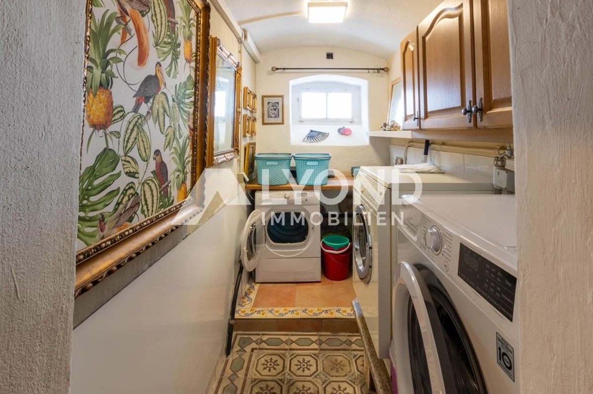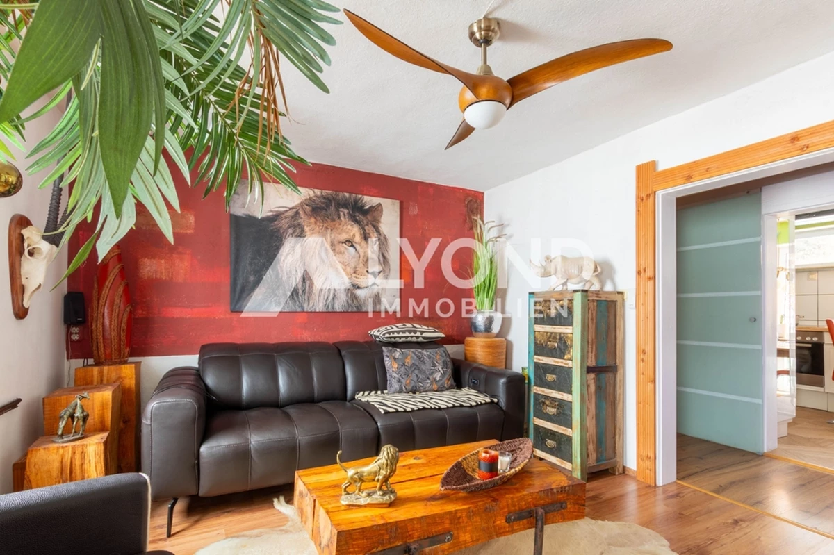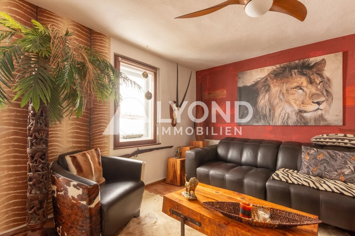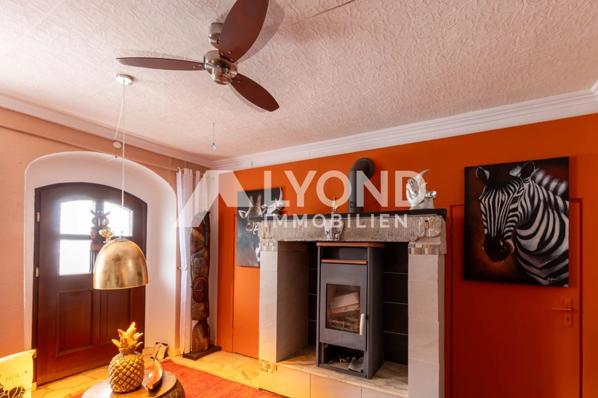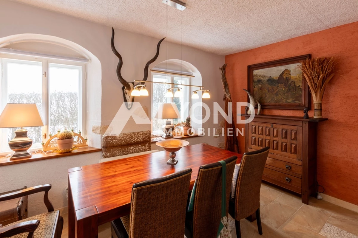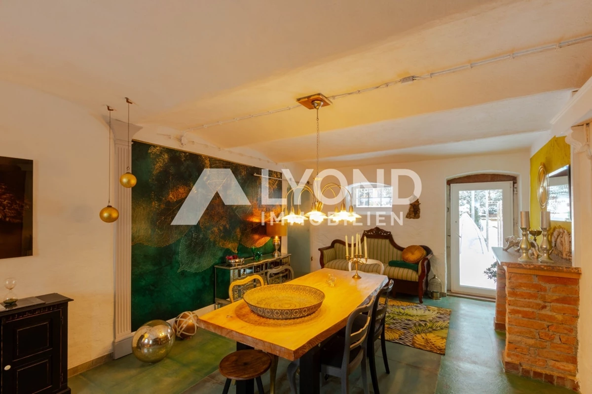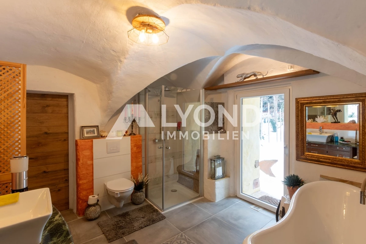 Im Inneren eröffnet sich ein außergewöhnliches Wohnkonzept, das sich bewusst von klassischen Gestaltungsmustern abhebt. Die Räume sind mit großer Liebe zur afrikanischen Architektur, Farbwelt und Materialität gestaltet. Warme Natur- und Erdtöne, strukturierte Wandoberflächen, Naturstein- und Holzelemente sowie historische Balken schaffen eine besondere Wohnatmosphäre mit Tiefe und Authentizität. Gewölbebereiche, bewusst unregelmäßige Wandführungen und sichtbare Originalmaterialien unterstreichen den individuellen Charakter des Hauses.