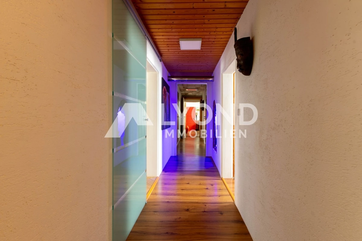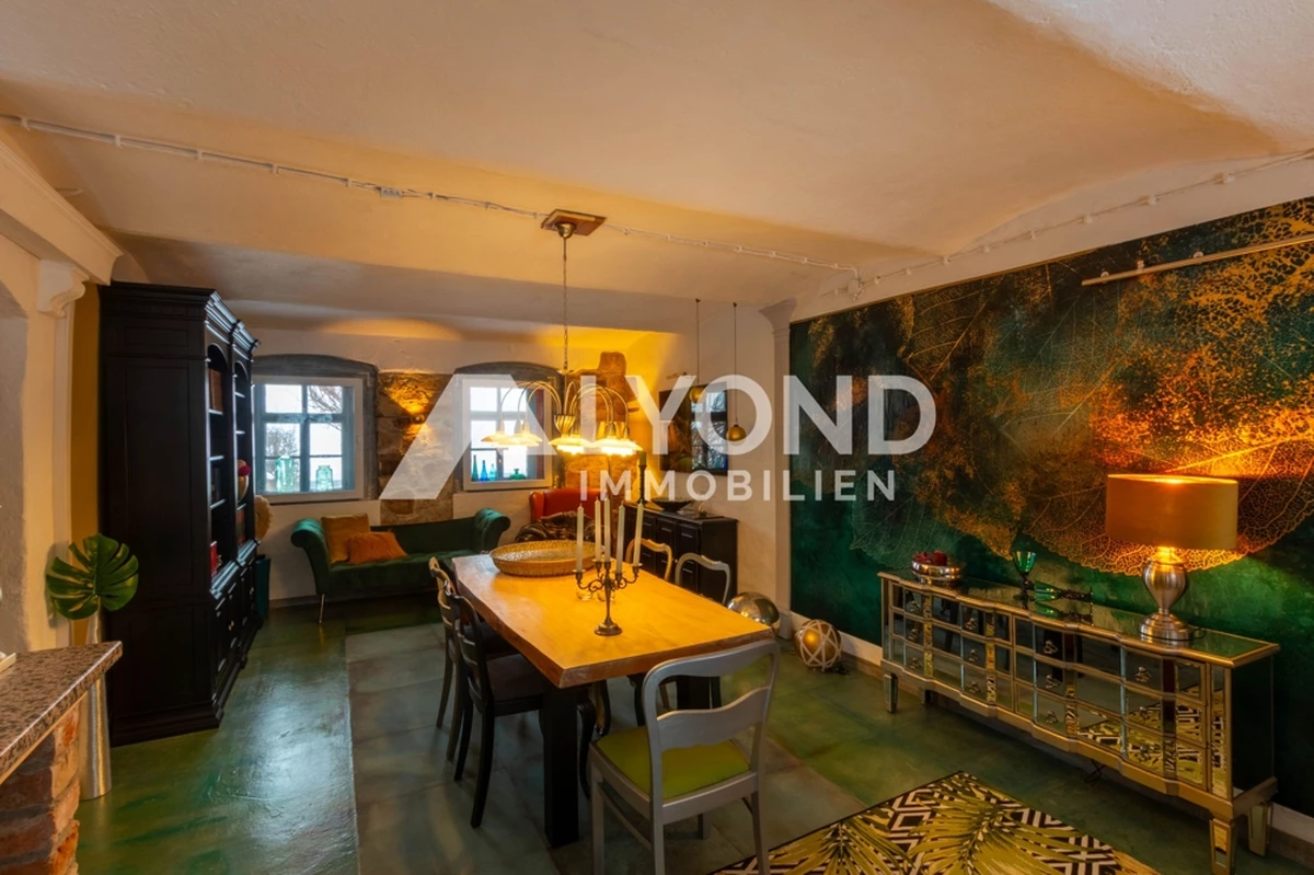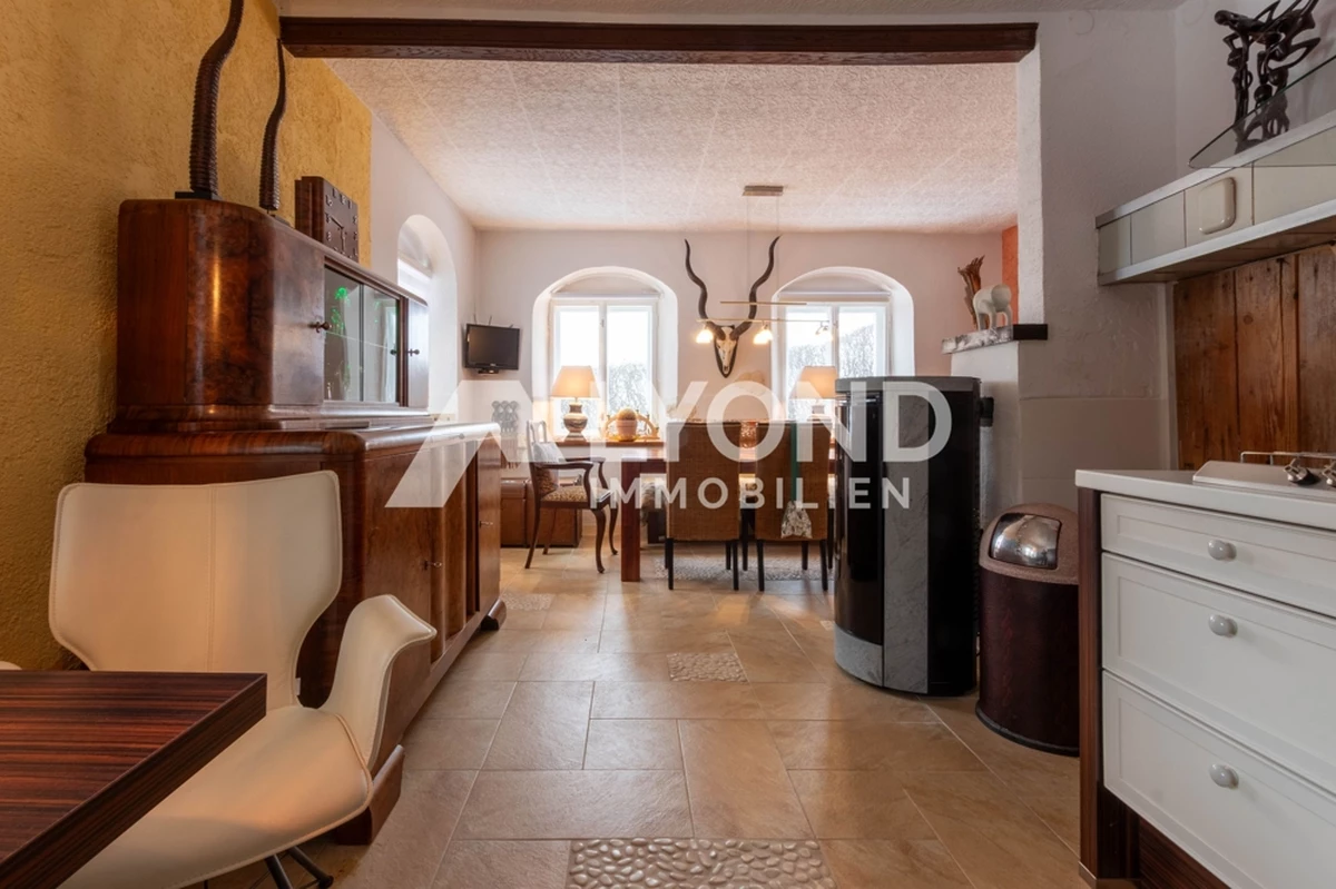 Die Wohnfläche von ca. 192 m² verteilt sich auf mehrere Ebenen und bietet zahlreiche Wohn-, Schlaf- und Aufenthaltsräume. Ergänzt wird das Raumangebot durch einen integrierten, nicht beheizten Scheunenbereich. Das Objekt präsentiert sich insgesamt in einem sehr gepflegten Zustand und vereint historische Substanz, individuelle Gestaltung und hohen Wohnkomfort.