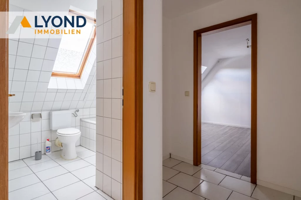 Zum Verkauf steht eine charmante Dachgeschosswohnung in zentraler Wohnlage von Castrop-Rauxel. Die Wohnung befindet sich im zweiten Obergeschoss eines Mehrfamilienhauses aus dem Jahr 1955 und bietet eine Wohnfläche von ca. 45 m². Sie verfügt über zwei gut geschnittene Zimmer, bestehend aus einem Wohnzimmer, einem Schlafzimmer, einer Küche, einem Badezimmer sowie einem Flur. Die Aufteilung der Räume ist praktisch und ermöglicht gute Stellmöglichkeiten.
