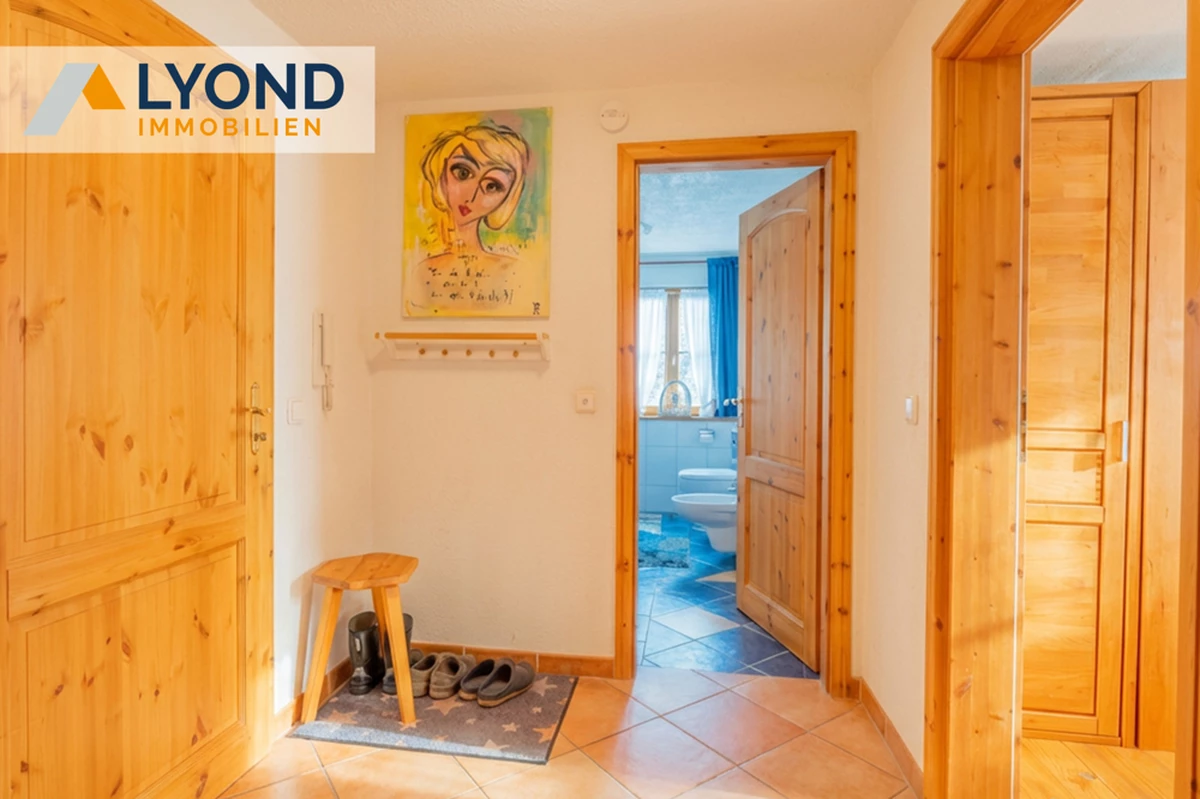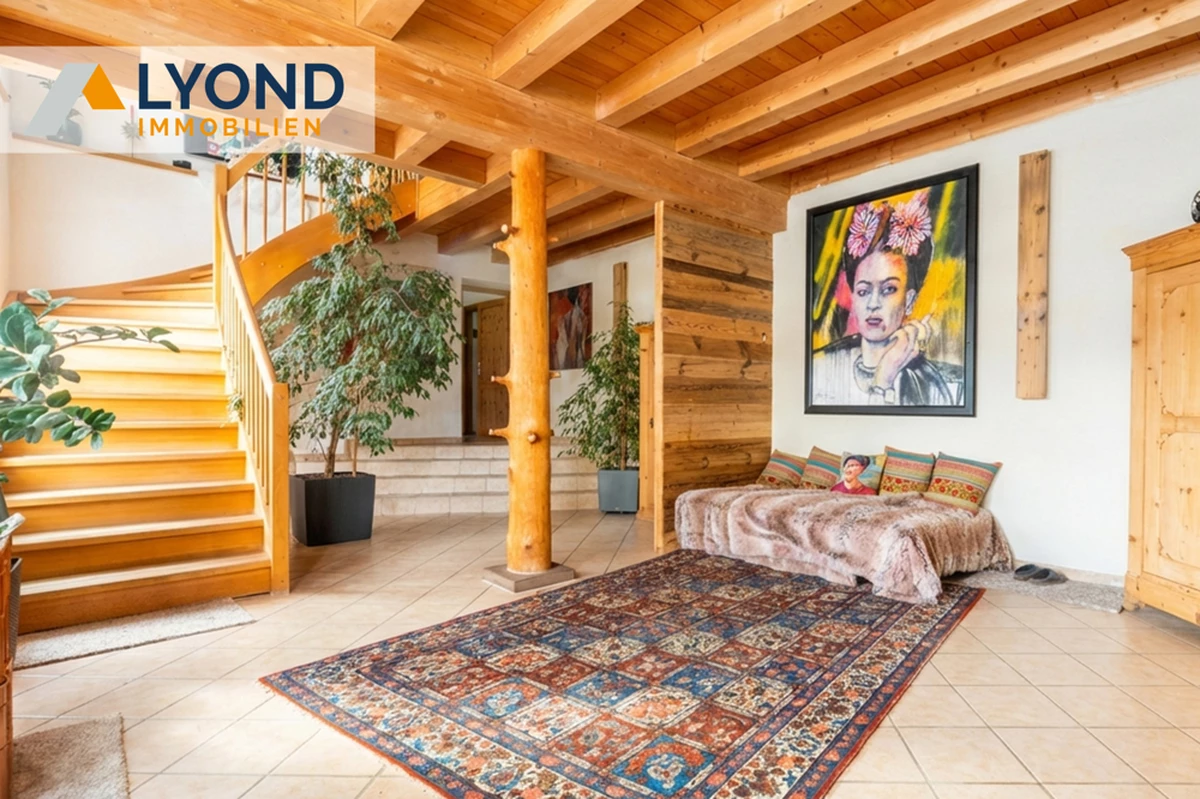 Neben 210 qm Wohnfläche stehen 200 qm Nutzfläche zur Verfügung – somit ideal für Familien, Mehrgenerationenwohnen, Homeoffice und Selbständige geeignet. Das ursprüngliche Bauernhaus wurde in den Jahren 2002-2003 liebevoll und solide kernsaniert. Bereits beim Betreten des Hauses spüren Sie das angenehme Wohnklima, das durch die