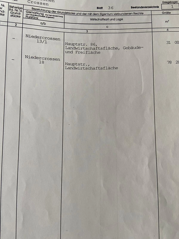 Großzügiges Grundstück mit ca. 7.820 m² und ca. 1.000 m² Bauland in Niedercrossen