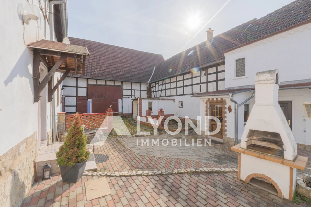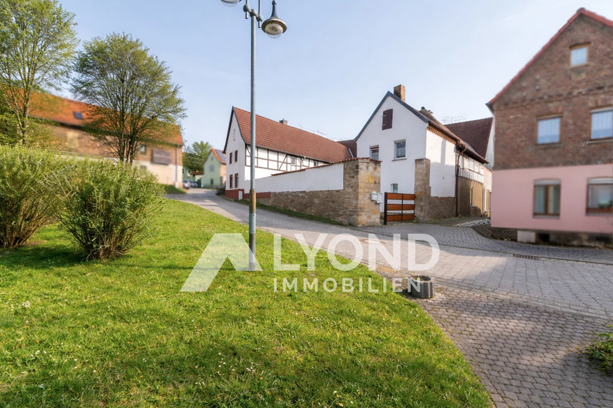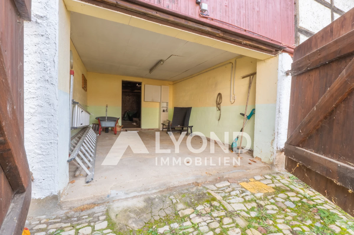 Das ca. 794 m² große Grundstück bietet viel Platz und umfasst neben dem Haupthaus ein weiteres Wohngebäude sowie mehrere Nebengebäude. Dazu gehören eine großzügige Scheune mit integrierter Garage sowie ehemalige Stallungen. Diese bieten vielseitige Nutzungsmöglichkeiten – beispielsweise als Lagerfläche, Werkstatt oder für einen möglichen Ausbau zu Wohn- oder Arbeitsräumen.