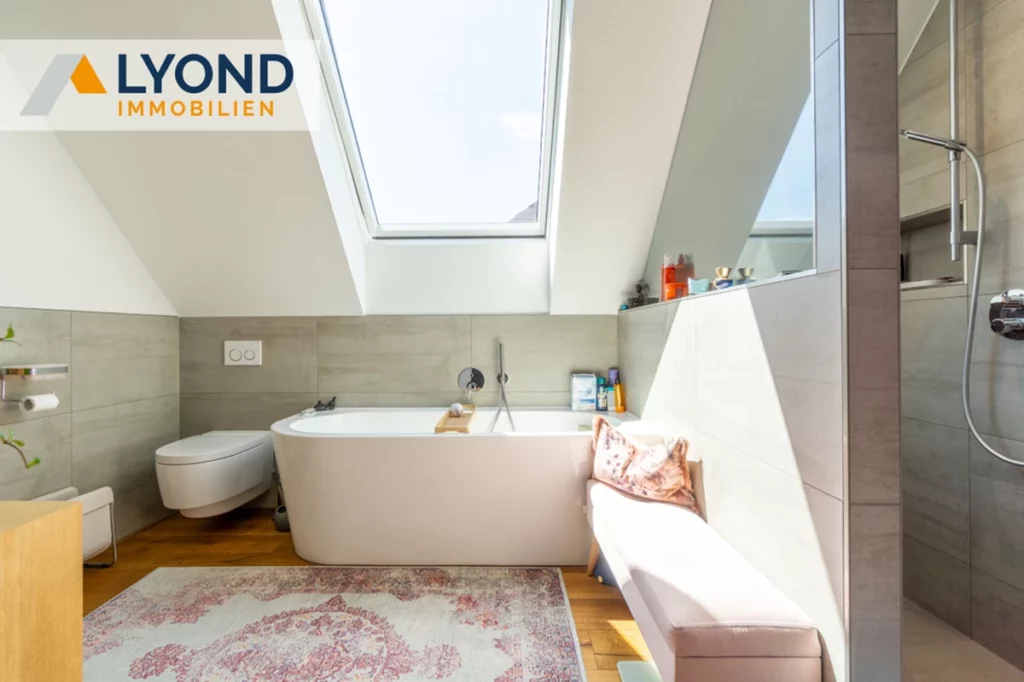 Technisch ist die Wohnung ein echtes Meisterstück: Smart-Home-System, Bose-Soundsystem, Videosprechanlage, elektrische Velux-Dachfenster, elektrische Rollläden und eine Klimaanlage sorgen für ein Wohnerlebnis auf höchstem Niveau. Das Tageslichtbad mit begehbarer Dusche und Badewanne kombiniert modernes Design mit wohltuender Wellness-Atmosphäre.