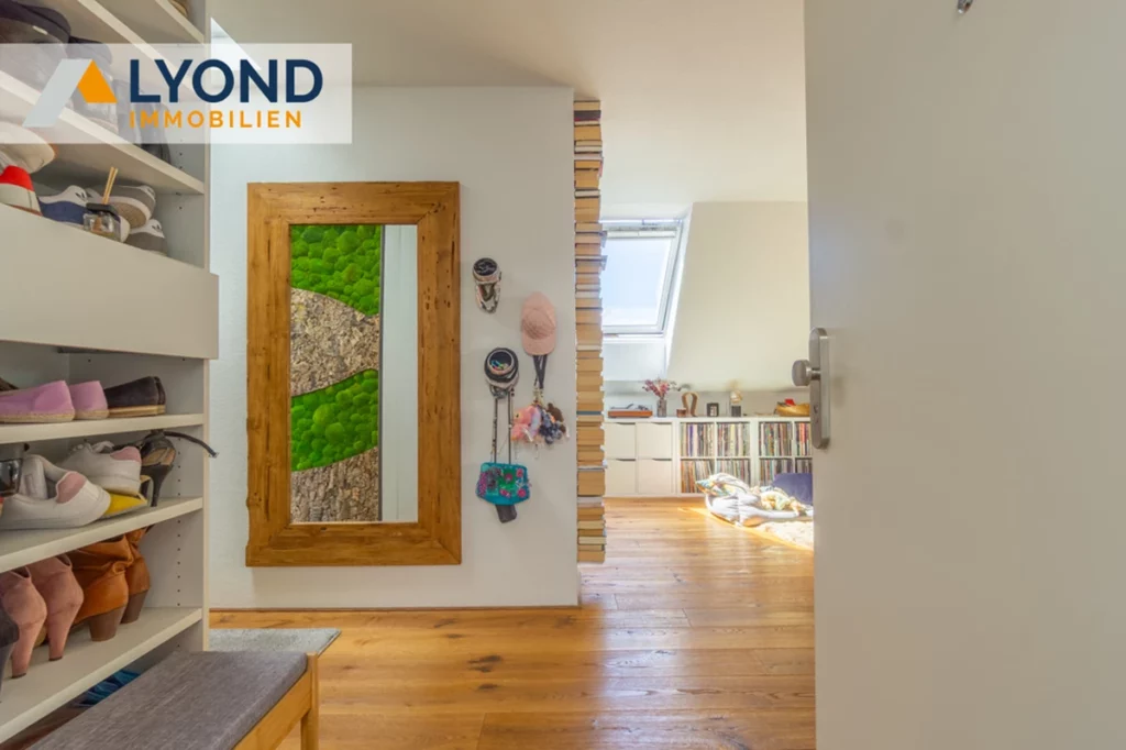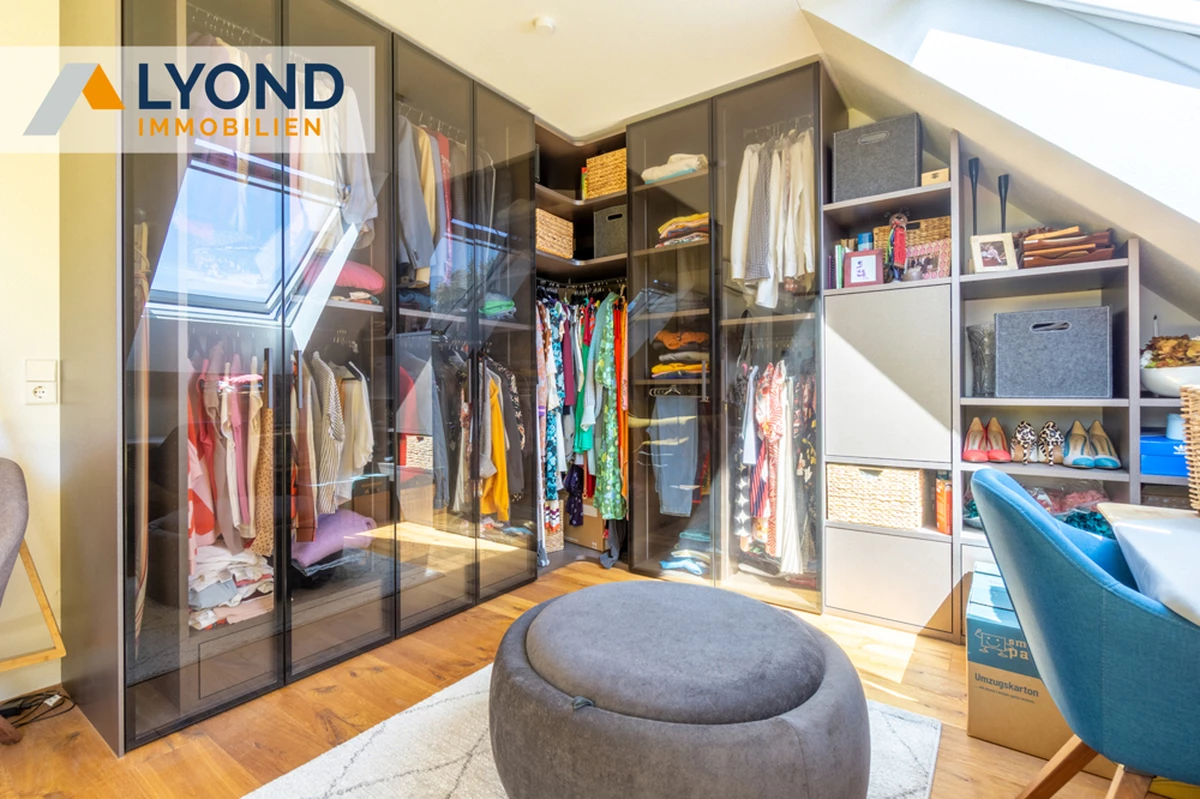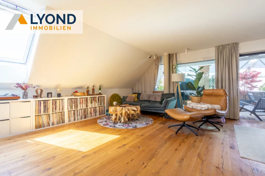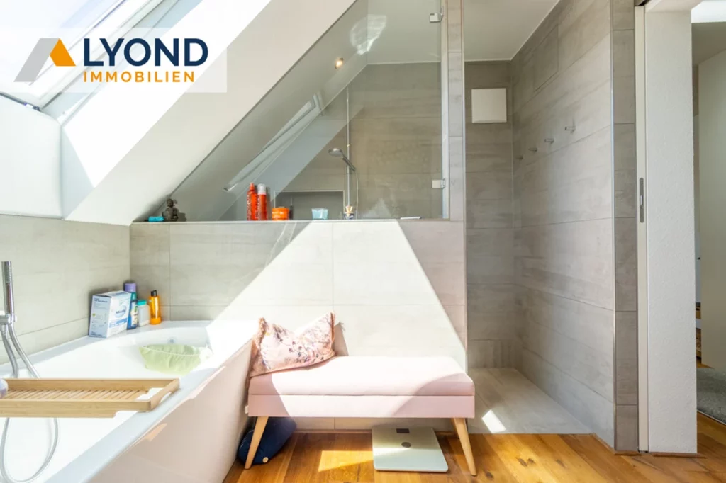 Das absolute Highlight: die rund 30 m² große Südwest-Dachterrasse. Mit elektrischer Markise und integrierter Überwachungstechnik genießen Sie hier sonnige Nachmittage und stimmungsvolle Abende – mit maximaler Privatsphäre und Blick in den Himmel.