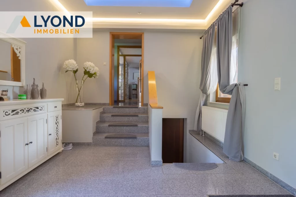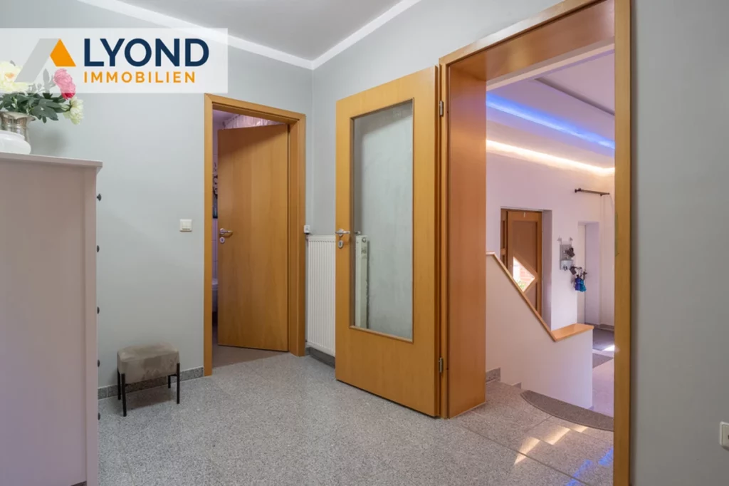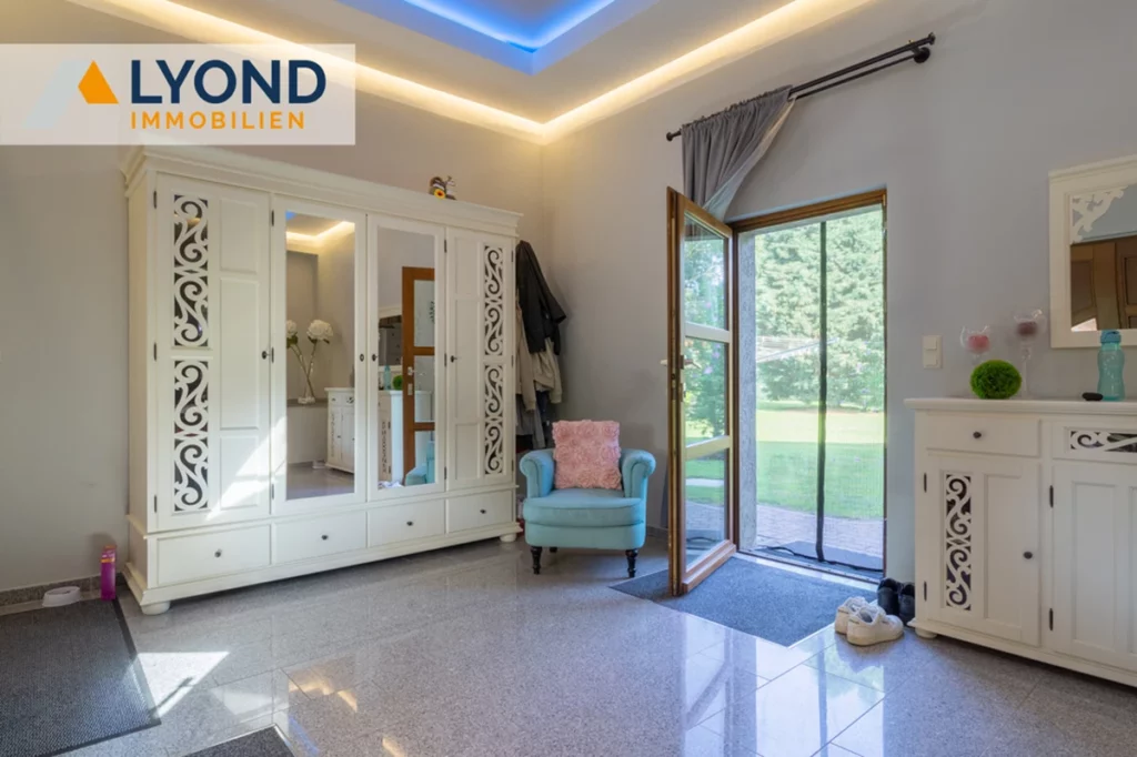 Neben dem Wohnbereich befinden sich zwei vermietete Gewerbeeinheiten mit separatem Zugang. Der neu errichtete Anbau aus dem Jahr 2024 erweitert diese Nutzungsmöglichkeit deutlich und bietet zusätzliche Flächen für Büro oder Lager. Die weitläufige Grünfläche, ein Teil davon derzeit eingezäunt und zur Pferdehaltung genutzt, schafft ein außergewöhnliches Raumgefühl. Der eigene Brunnen, eine moderne Kläranlage sowie niedrige Betriebskosten unterstreichen den durchdachten und nachhaltigen Charakter dieses besonderen Anwesens.