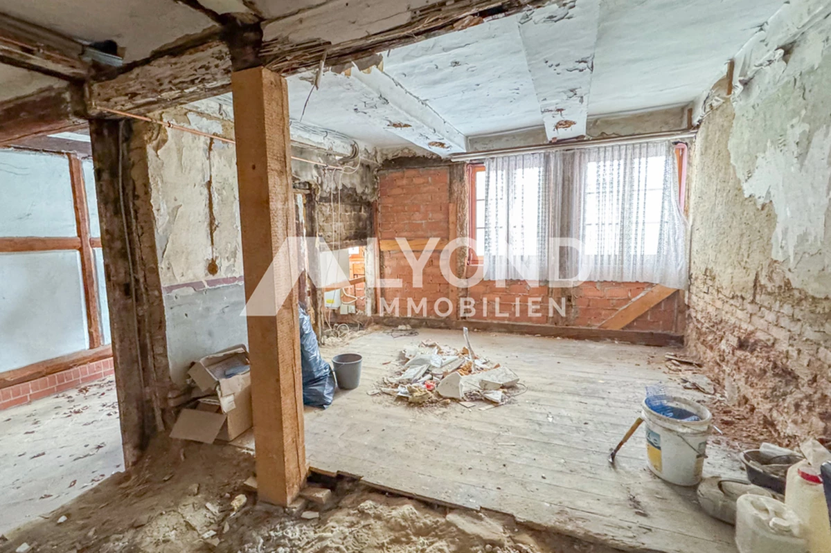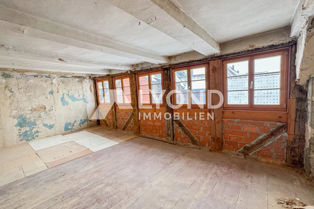 Zum Verkauf steht ein denkmalgeschütztes Reihenmittelhaus in zentrumsnaher Lage der historischen UNESCO-Welterbestadt Quedlinburg. Das um ca. 1700 errichtete Fachwerkhaus befindet sich aktuell im Rohbauzustand und bietet damit eine seltene Gelegenheit, eine historische Immobilie nach eigenen Vorstellungen auszubauen und zu gestalten. Mit Mut, Ideen und handwerklichem Geschick lässt sich hier ein ganz besonderes Zuhause oder auch eine attraktive Ferienimmobilie schaffen. Die Wohnfläche beträgt ca. 159 m² bei einer Grundstücksfläche von ca. 118 m². Ursprünglich wurde das Gebäude teilweise als zwei Häuser genutzt, wodurch flexible Nutzungsmöglichkeiten denkbar sind. Ein Stellplatz befindet sich direkt vor dem Haus, zusätzlich ist ein Kriechkeller vorhanden. Im Erdgeschoss sind aktuell Flur, Bad, Küche sowie ein Wohn- und Essbereich vorgesehen. Das Obergeschoss umfasst einen Flur, ein Zimmer, eine offene Küche sowie einen großzügigen Wohn- und Essbereich, der sich auch als Galerie gestalten lässt. Im Dachgeschoss befinden sich ein Flur, ein Schlafzimmer sowie ein kleines Zimmer; ein weiterer Bereich kann zusätzlich ausgebaut werden und bietet weiteres Entwicklungspotenzial. Ein kleiner, geschützter Innenhof auf der Gebäuderückseite schafft eine ruhige Außenfläche, ergänzt durch einen praktischen Schuppen für Gartengeräte oder Abstellzwecke. Ein spannendes Denkmalobjekt mit viel Gestaltungsspielraum – ideal für alle, die ein individuelles Zuhause oder eine besondere Investition in Quedlinburg suchen.