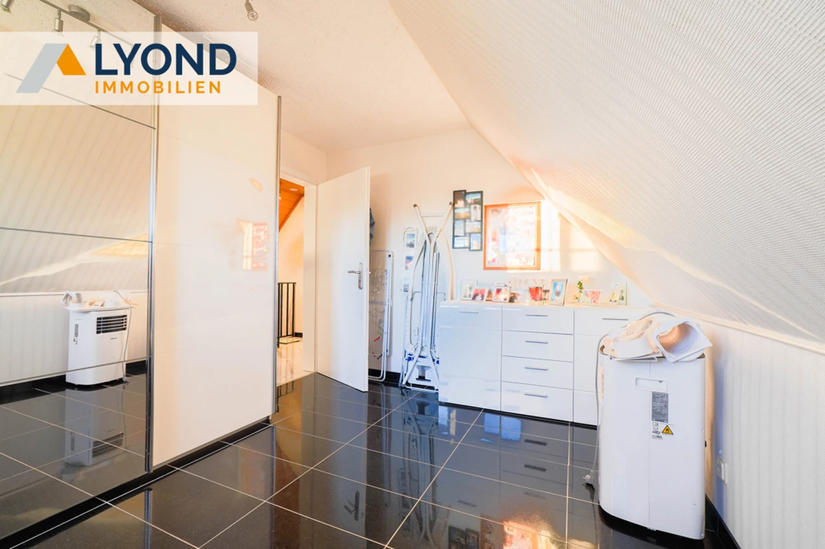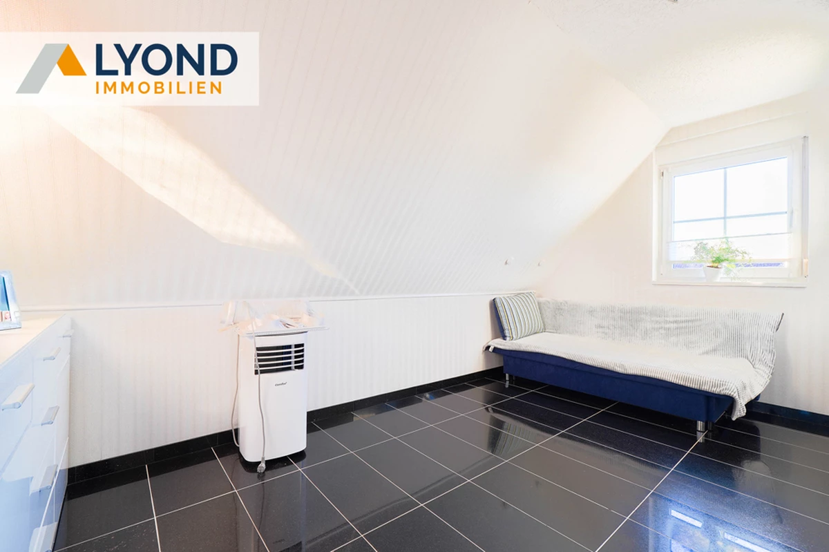 Die Küche überzeugt durch ihre funktionale und hochwertige Ausstattung und kann inklusive der Einbauküche mit eleganten Granitarbeitsflächen übernommen werden. Ein Badezimmer mit Dusche im Erdgeschoss ergänzt diese Wohnebene optimal. Im Obergeschoss stehen Ihnen ein weiteres Badezimmer mit Badewanne, ein Büro, ein Kinderzimmer sowie das komfortable Schlafzimmer zur Verfügung. Dieses punktet nicht nur mit einer Klimaanlage, sondern auch mit dem direkten Zugang zu einer großzügigen Terrasse. Ein privater Rückzugsort für entspannte Morgen oder ruhige Abende.