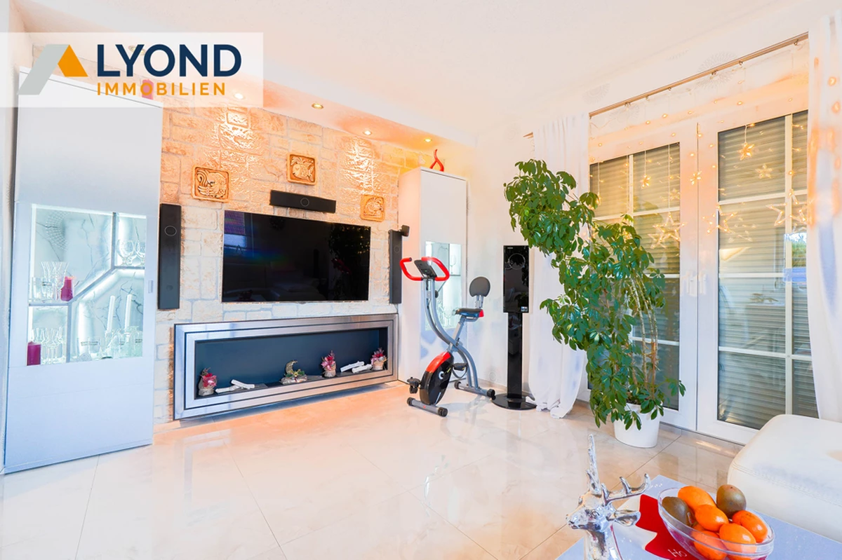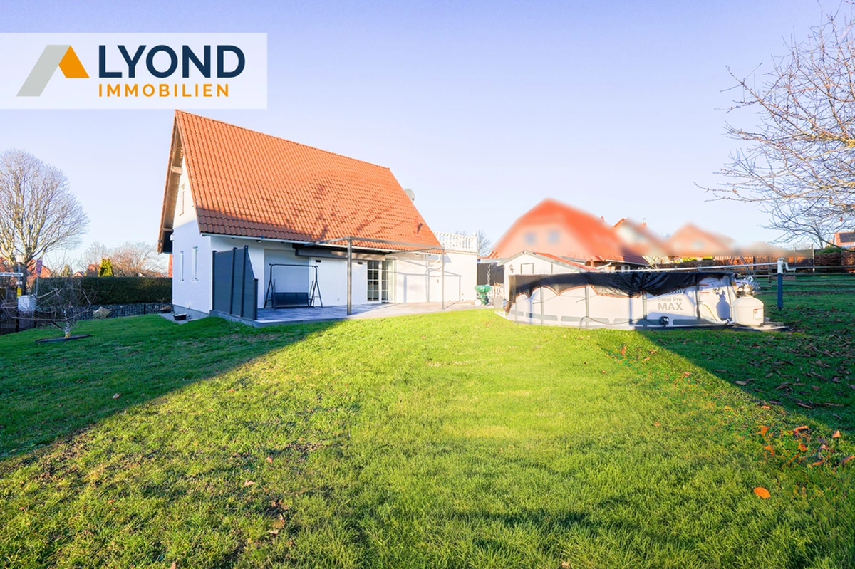 Bereits beim Eintreten empfängt Sie ein freundlicher Eingangsbereich, von dem aus Sie sowohl den Wohn- und Essbereich als auch die Küche erreichen. Der helle Wohnbereich bildet das Herzstück des Hauses und öffnet sich direkt zur sonnigen Außenterrasse und in den liebevoll gestalteten Garten. Hier erleben Sie pure Erholung, ob bei gemütlichen Stunden auf der Terrasse oder an warmen Sommertagen am Pool, dieses Anwesen vermittelt echtes Urlaubsgefühl im eigenen Zuhause.