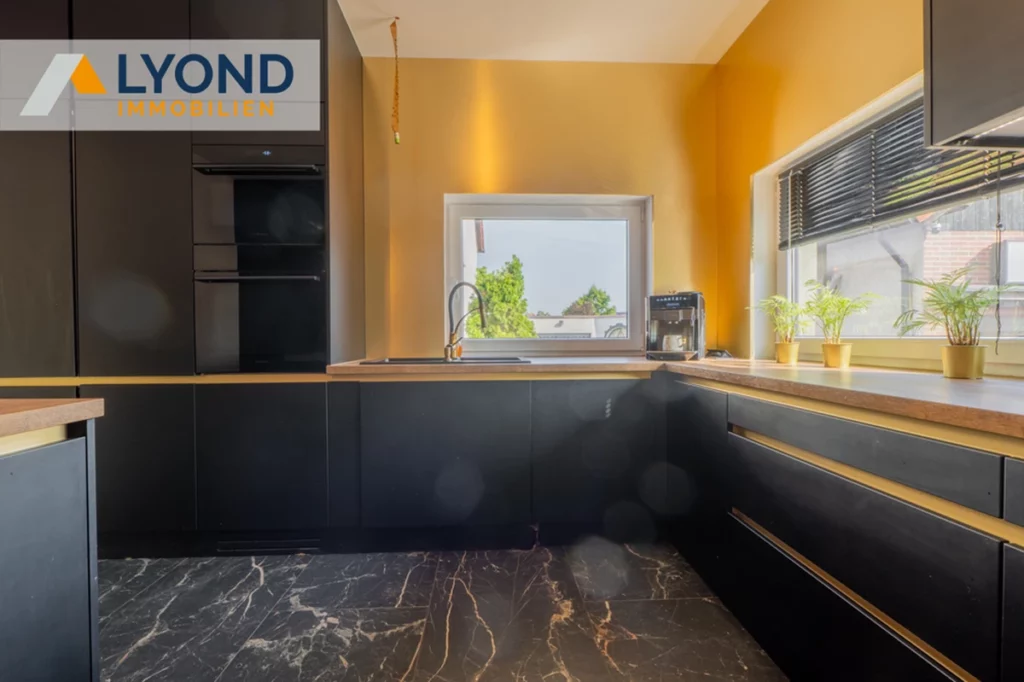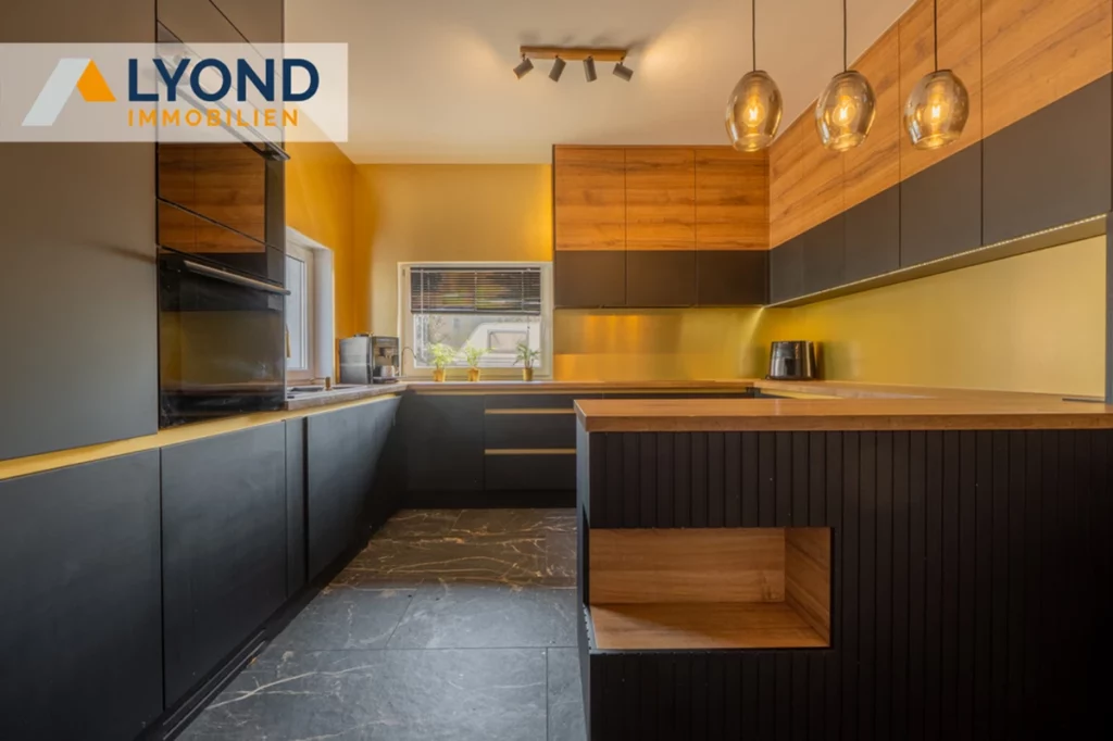 Bereits beim Betreten spürt man die gelungene Kombination aus hochwertiger Ausstattung und behaglicher Wohnatmosphäre. Im Erdgeschoss sorgt eine Fußbodenheizung für angenehme Wärme, die 2023 erneuerte Einbauküche lädt zum Kochen und Genießen ein. Das Wohnzimmer mit Kamin bildet das Herzstück des Hauses – ein Ort für gesellige Abende und entspannte Stunden. Eine moderne Klimaanlage sorgt sowohl hier als auch im Nebengebäude für ein stets angenehmes Raumklima.