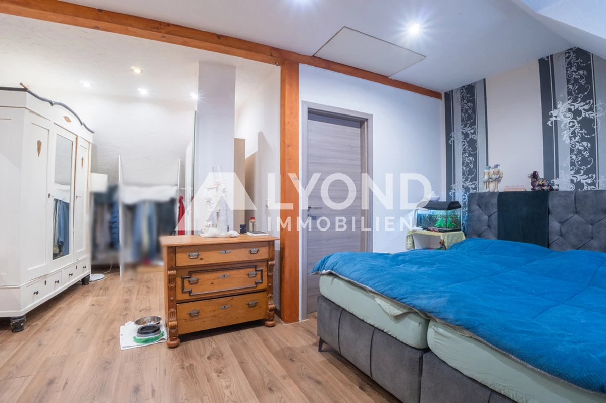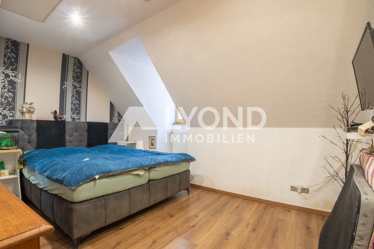 Im Dachgeschoss stehen ein Schlafzimmer sowie ein weiteres Badezimmer mit Dusche zur Verfügung. Ergänzt wird das Raumangebot durch einen nicht ausgebauten Spitzboden sowie einen teilunterkellerten Bereich mit Gewölbekeller, der zusätzlichen Stauraum bietet.