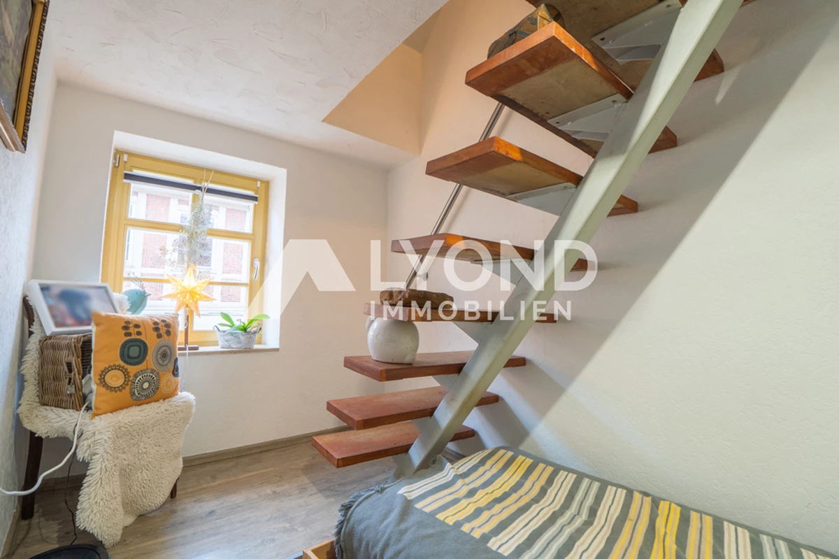 Das Wohnhaus erstreckt sich über drei Etagen und ist nicht barrierefrei. Ein separates Kinderzimmer ist nicht vorhanden, weshalb sich die Immobilie besonders für Paare, Singles oder eine kleine Familie eignet.