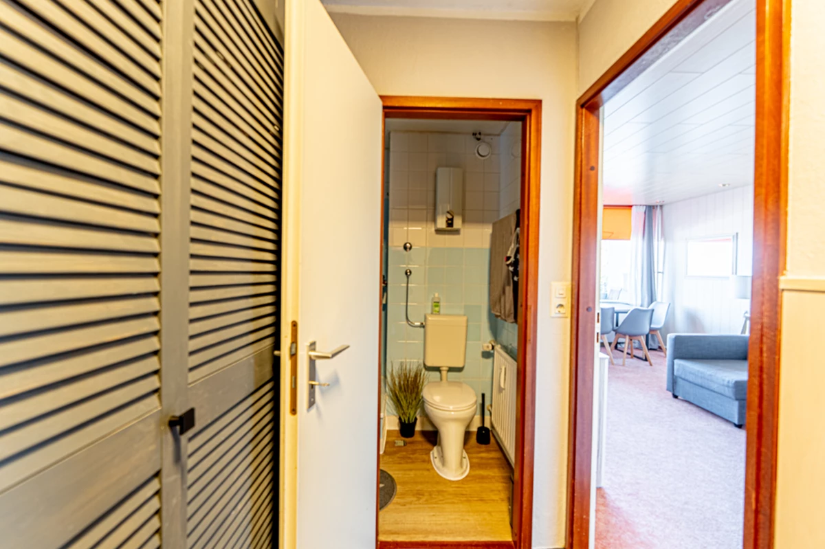 Auch das gesamte Wohnobjekt präsentiert sich in einem sehr gepflegten Zustand und vermittelt ein angenehmes Wohnumfeld. Im Flur befindet sich zudem ein kompakter und vielseitiger Kleiderschrank, der auf Wunsch übernommen werden kann und praktischen Stauraum bietet. Die Wohnung richtet sich ideal an eine oder zwei Personen, die Wert auf Komfort, Ruhe und ein harmonisches Zuhause legen. Wer einen Ort sucht, der Geborgenheit, Entspannung und ein Gefühl von Freiheit miteinander verbindet, findet hier eine besondere Gelegenheit, sich den Traum vom eigenen Rückzugsort inmitten einer beeindruckenden Berglandschaft zu erfüllen.