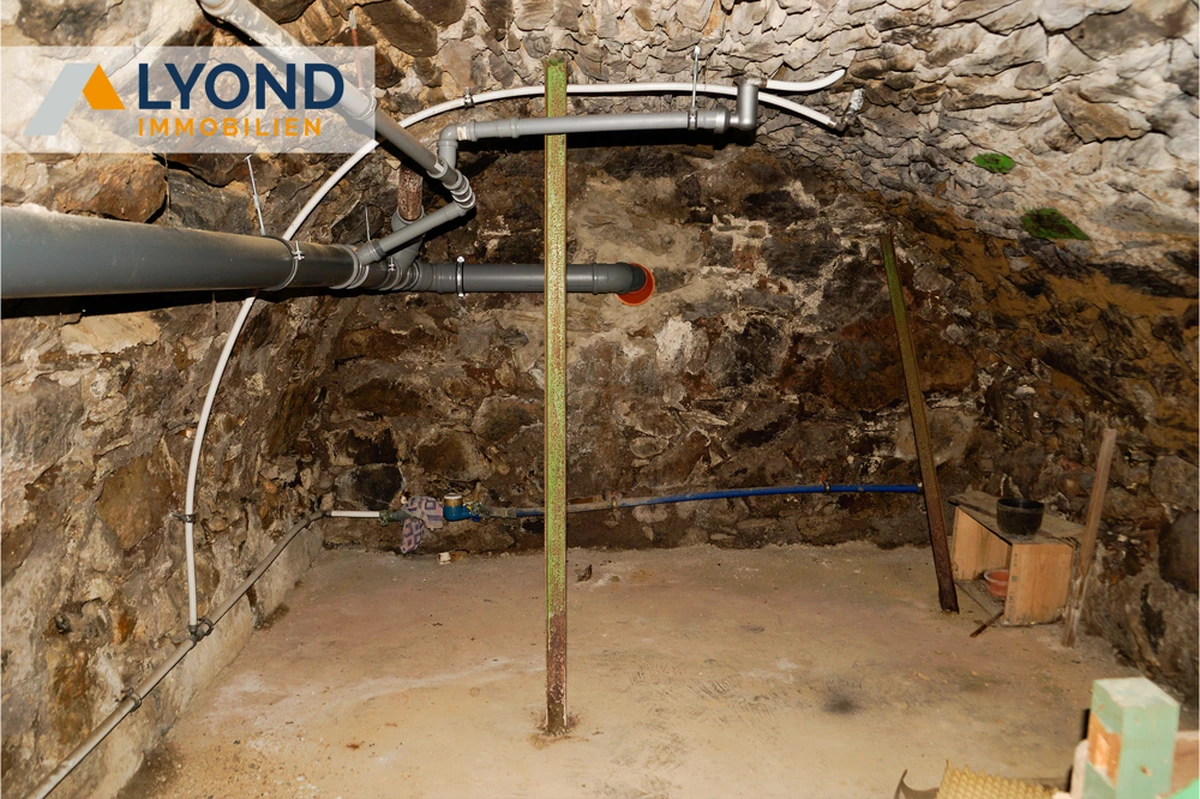 Ein besonderes Highlight ist der Gewölbekeller mit drei separaten Räumen, der den historischen Charakter des Hauses unterstreicht. Durch den Außenzugang ist der Keller besonders praktisch nutzbar, beispielsweise als Lagerfläche, Werkstatt oder für Hobbyzwecke.