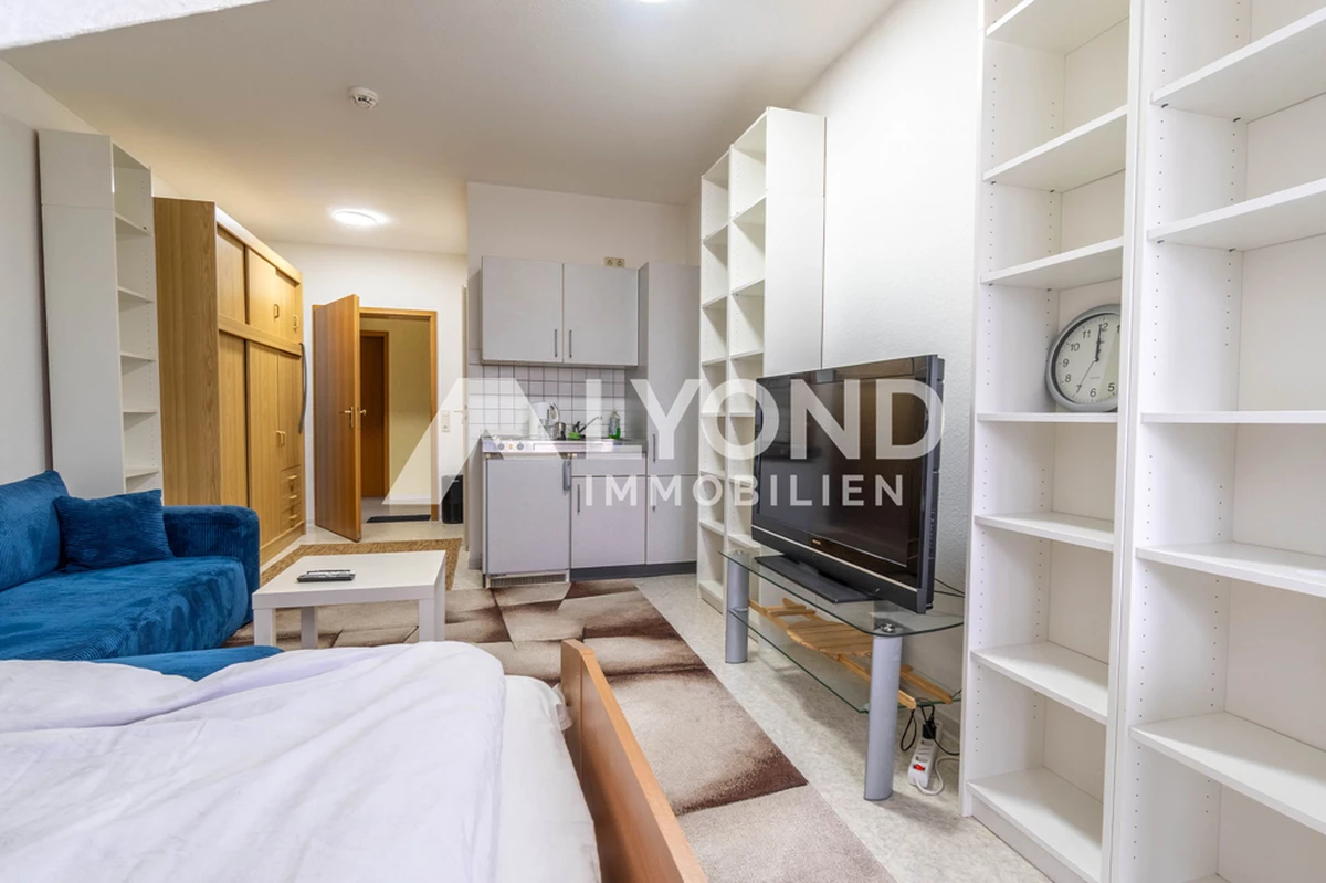Die Wohnung wird voll möbliert angeboten und ermöglicht somit einen sofortigen Einzug oder eine unkomplizierte Vermietung. Der helle Wohn- und Schlafbereich ist funktional gestaltet und bietet ausreichend Platz für Wohnen, Arbeiten und Entspannen. Durch den direkten Zugang zum Balkon wird der Wohnraum angenehm erweitert; hier lässt sich der Feierabend im Freien genießen. Die integrierte, kleine Kochzeile ist mit einem Kochfeld sowie einem Kühlschrank ausgestattet und fügt sich platzsparend in den Wohnbereich ein. Das Badezimmer verfügt über eine Dusche und ist praktisch geschnitten.