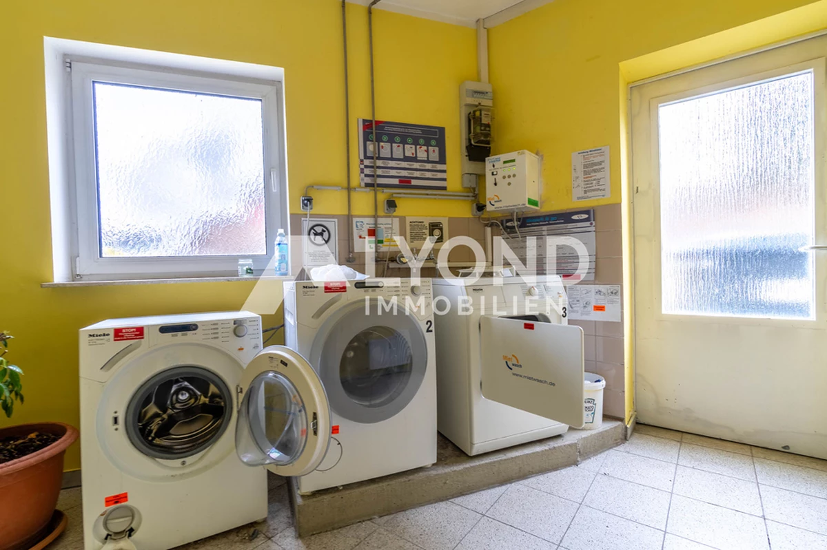 Ein separater Waschraum im Keller mit gemeinschaftlich nutzbaren Waschmaschinen sorgt für zusätzlichen Komfort im Alltag und schafft mehr Platz im Appartement selbst. Darüber hinaus stehen ein eigener Fahrrad-Stellplatz sowie ein PKW-Stellplatz zur Verfügung, was insbesondere in städtischen Lagen einen erheblichen Mehrwert darstellt.