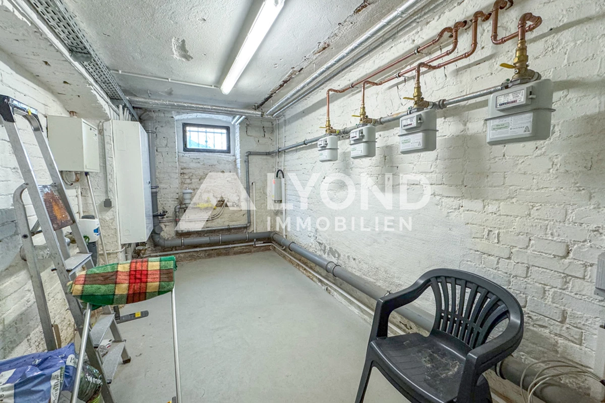 Das Haus ist vollunterkellert, wobei jede Einheit über einen eigenen, abgeschlossenen Kellerraum verfügt. Vor dem Gebäude stehen kostenfreie Stellplätze zur Verfügung. Im rückwärtigen Bereich lädt ein gepflegter Innenhof zum Verweilen ein und wird durch ein praktisches Carport ergänzt.